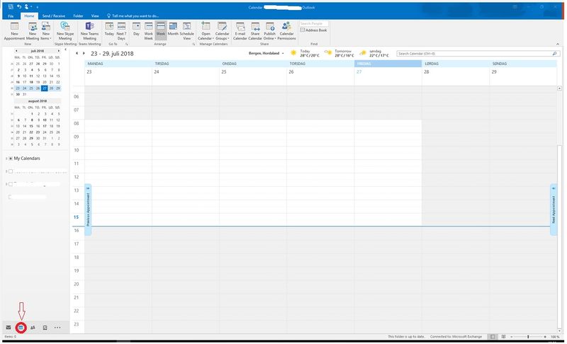 1 .Start Outlook og klikk på kalenderknappen nederst til venstre.