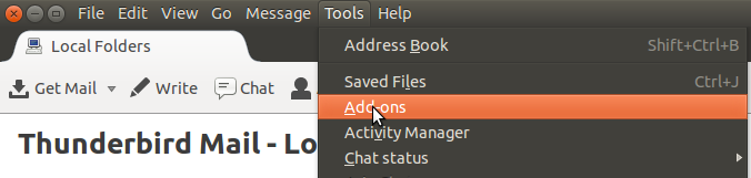 Addonsmeny i thunderbird.