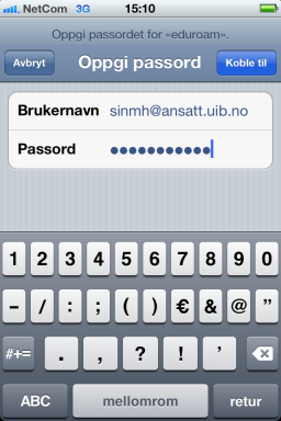 Sett inn brukernavn og pasord