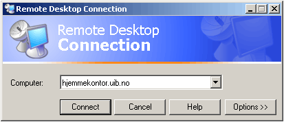 | nåværende | 19. jan. 2010 kl. 16:30 | 413 × 178 (16 KB) | St06511 (diskusjon | bidrag) | Bilde som viser pålogging med Remote Desktop i Windows XP |
