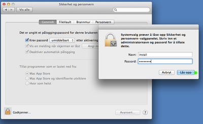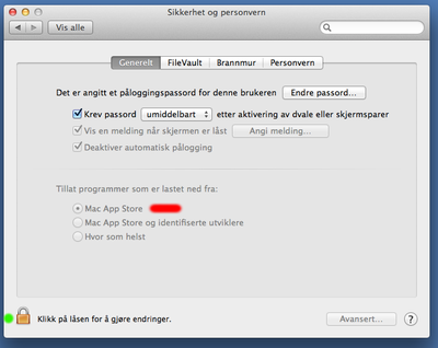 Velg «Sikkerhet og personvern» fra «Systemvalg».