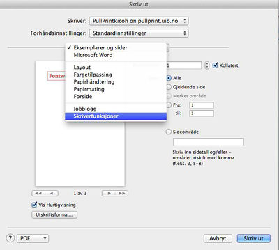 Der hvor det står "Forhåndsvisning" velger en "Skriverfunksjoner"