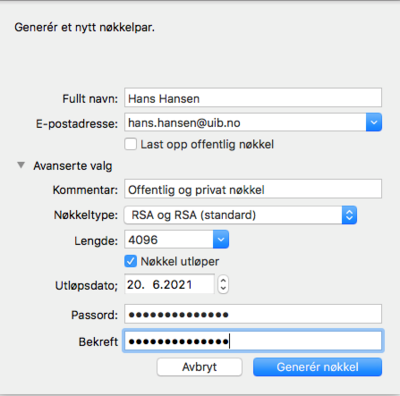- Nå skal vi opprette/lage en privat og en offentlig nøkkel.