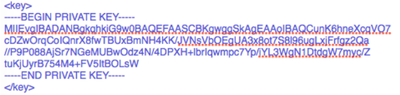 • Kopier fra og med <key> tag til og med </key> tag merket med blått og lim det inn i en ny tekstfil og lagre som OpenVPNCertificatesca.key
