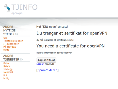 For å bruke OpenVPN trenger du sertifikater. Det kan du laste ned fra https://tjinfo.uib.no/openvpn