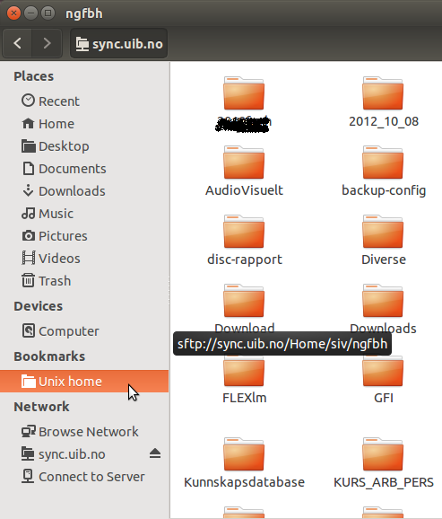 - Skriv inn sftp://sync.uib.no i adressefeltet
