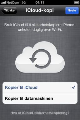 13.Dersom du ikke ønsker å bruke iCloud klikk på "Kopier til datamaskinen" og bekreft med neste.