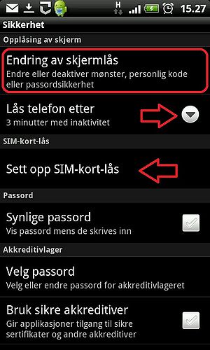- Sett opp SIM-kortlås, så SIM-kortet må låses ved omstart av telefonen