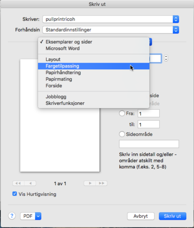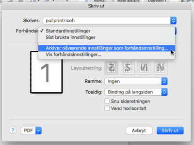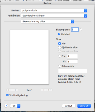Etter at man har trykket Fil - Skriv ut... eller cmd + p får man denne skjermen.