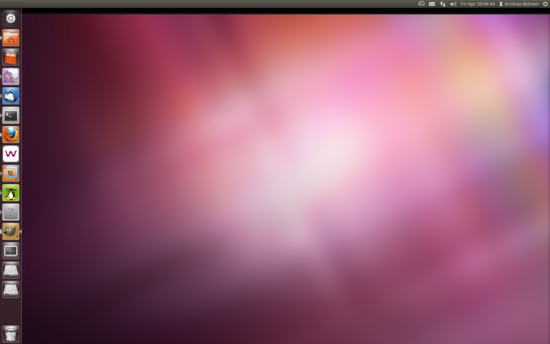 I Unity Dash er det heller ingen menylinje nederst på skjermen, men du har oversikt over programmene langs venstre kant.