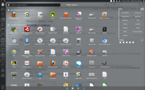Når du åpner Unity Dash møter du følgende brukergrensesnitt: