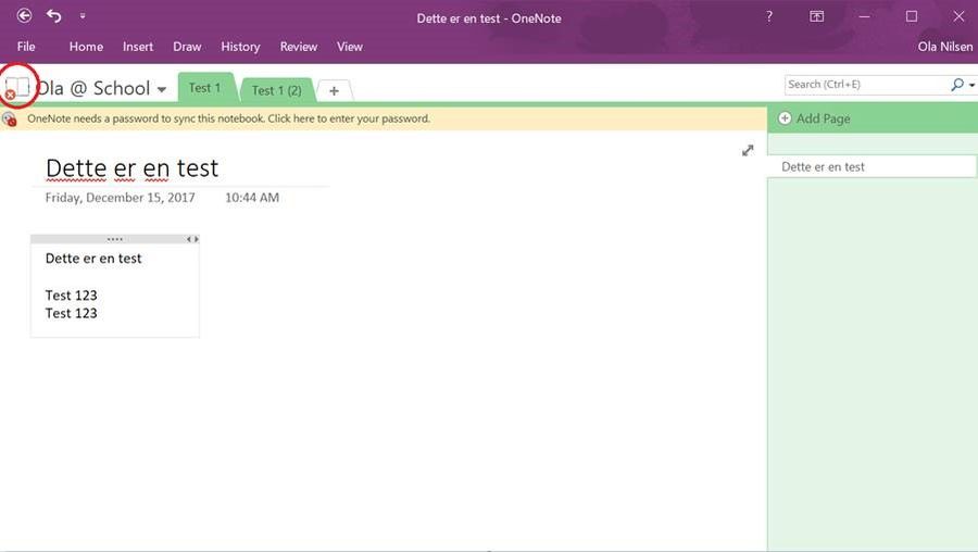 Her beskrives en løsning der en lagrer en ny kopi av OneNote dokumentet som synkroniseres mot Onedrive. Dette er en alternativ løsning dersom en ikke får lastet (eller ikke ønsker å laste inn) originaldokumentet på nytt. (Sjekk denne siden for info om hvordan en laster inn det originale dokumentet på nytt)