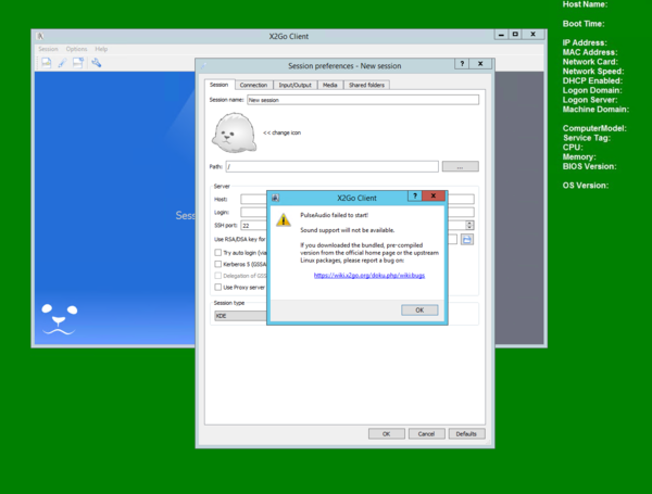 Ny side: == X2GO , fjernstyrt skrivebord for Linux == === Hvordan komme i gang : === * Feilmelding som kommer ved første kjøring da vi ikke har skrudd av støtte for lyd. Trykk Ok. File:ste… |