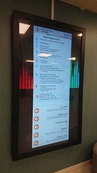 Digitale skilt er en elektronisk variant av UiB sine skilt. Disse har samme utseende som de vanlige skiltene, slik at de er lett gjenkjennbare for brukerne. | Digitale skilt er en elektronisk variant av UiB sine skilt. Disse har samme utseende som de vanlige skiltene, slik at de er lett gjenkjennbare for brukerne. | ||
