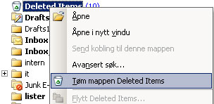1) Høyre klikk på Slettede elementer og velg Tøm mappe