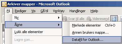 Alternativt må du gå på Fil-menyen og velge Åpne... - Datafil for Outlook.
