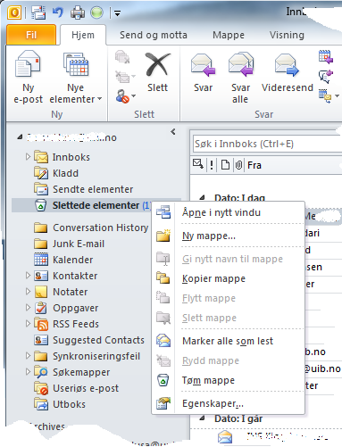 1) Høyre klikk på Slettede elementer og velg Tøm mappe