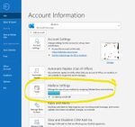 For å åpne en arkivfil eller en datafil må du gå på Fil -> Informasjon -> Kontoinstillinger -> Kontoinstillinger...